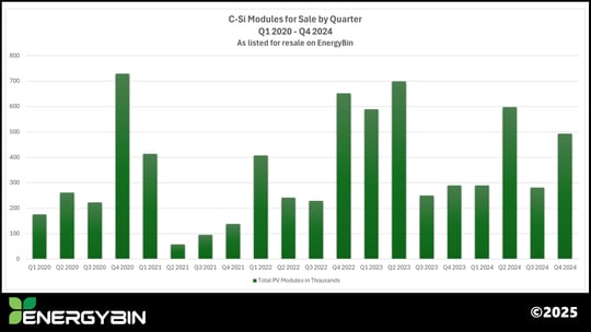 2024 was the first year that Thin Film modules appeared for resale on EnergyBin. However, they weren’t included in the price index because they only made up 1% of total modules for resale. Legacy POLY modules also remained at 1% of overall modules for resale.